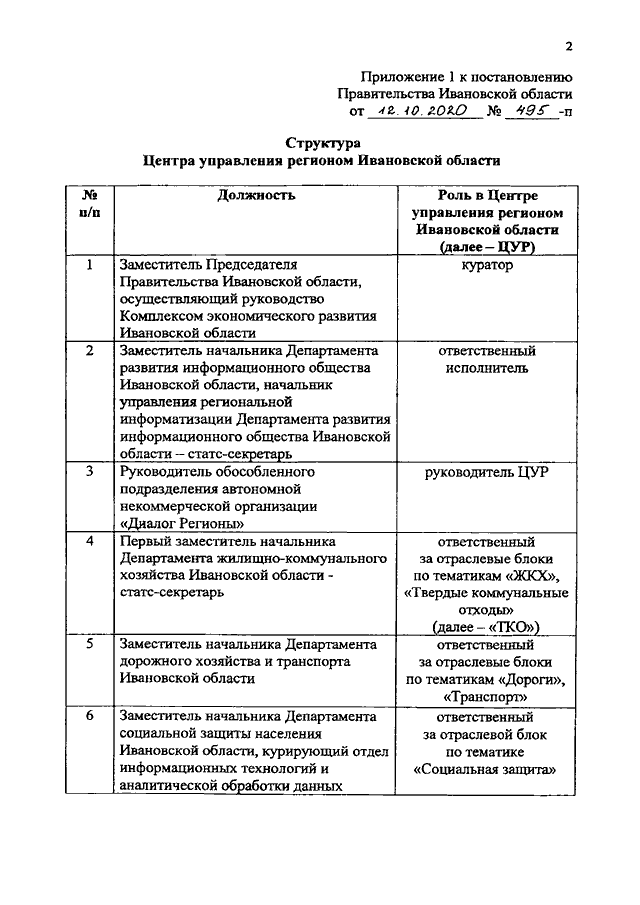 Постановление Правительства Ивановской области от 12.10.2020 N 495-п "О создании и функционировании Центра управления регионом Ивановской области" (вместе с "Положением о Центре управления регионом Ивановской области")
