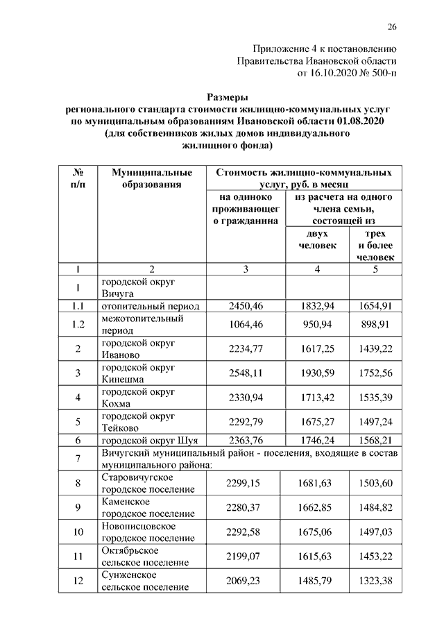 Постановление Правительства Ивановской области от 16.10.2020 N 500-п "Об установлении размеров региональных стандартов стоимости жилищно-коммунальных услуг"
