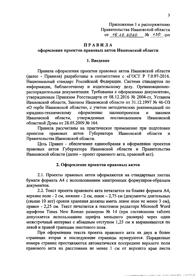 Распоряжение Правительства Ивановской области от 16.10.2020 N 130-рп "Об утверждении Правил оформления проектов правовых актов Ивановской области и Порядка заверения копий правовых актов Ивановской области"