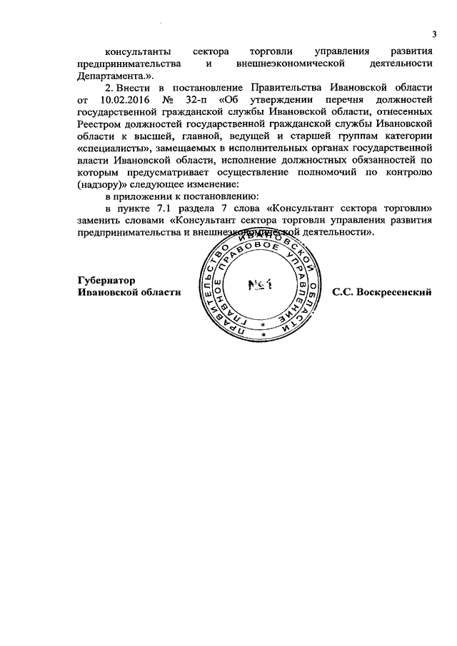 Постановление Правительства Ивановской области от 16.10.2020 N 513-п "О внесении изменений в постановления Правительства Ивановской области от 04.04.2013 N 118-п "Об утверждении Положения о Департаменте экономического развития и торговли Ивановской области" и от 10.02.2016 N 32-п "Об утверждении перечня должностей государственной гражданской службы Ивановской области, отнесенных Реестром должностей государственной гражданской службы Ивановской области к высшей, главной, ведущей и старшей группам категории "специалисты", замещаемых в исполнительных органах государственной власти Ивановской области, исполнение должностных обязанностей по которым предусматривает осуществление полномочий по контролю (надзору)"