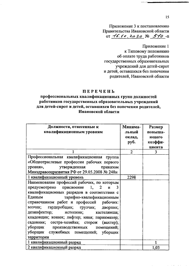 Постановление Правительства Ивановской области от 16.10.2020 N 510-п "О внесении изменений в постановление Правительства Ивановской области от 31.12.2008 N 366-п "О системе оплаты труда работников государственных учреждений системы социальной защиты населения Ивановской области" (вместе с "Перечнем профессиональных квалификационных групп должностей работников государственных учреждений системы социальной защиты населения Ивановской области", "Перечнем профессиональных квалификационных групп должностей работников государственных образовательных учреждений для детей-сирот и детей, оставшихся без попечения родителей, Ивановской области")