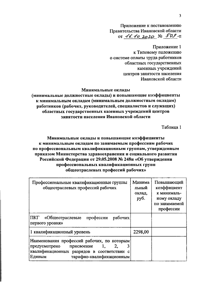 Постановление Правительства Ивановской области от 16.10.2020 N 509-п "О внесении изменений в постановление Правительства Ивановской области от 31.12.2008 N 364-п "О системе оплаты труда работников областных государственных казенных учреждений центров занятости населения Ивановской области"