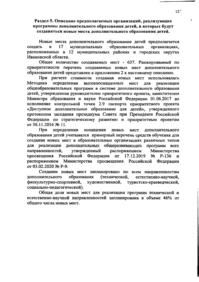 Распоряжение Правительства Ивановской области от 19.10.2020 N 134-рп "О концепции создания новых мест в образовательных организациях различных типов для реализации дополнительных общеразвивающих программ всех направленностей в рамках федерального проекта "Успех каждого ребенка" национального проекта "Образование" на 2022 - 2023 годы"
