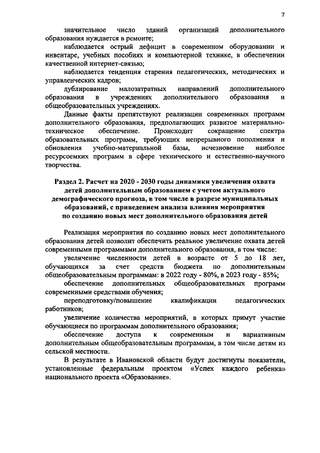 Распоряжение Правительства Ивановской области от 19.10.2020 N 134-рп "О концепции создания новых мест в образовательных организациях различных типов для реализации дополнительных общеразвивающих программ всех направленностей в рамках федерального проекта "Успех каждого ребенка" национального проекта "Образование" на 2022 - 2023 годы"