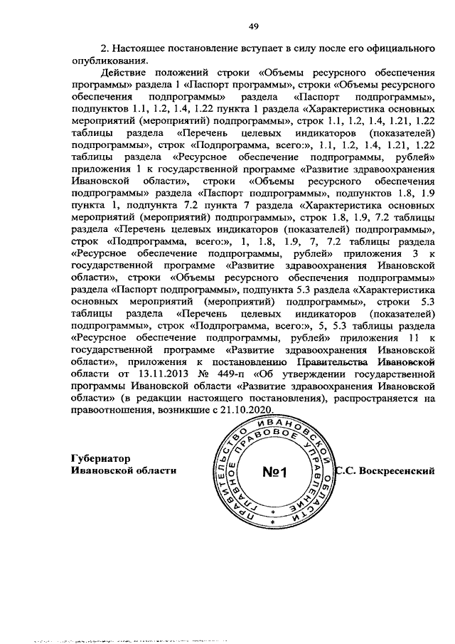 Постановление Правительства Ивановской области от 30.10.2020 N 541-п "О внесении изменений в постановление Правительства Ивановской области от 13.11.2013 N 449-п "Об утверждении государственной программы Ивановской области "Развитие здравоохранения Ивановской области"