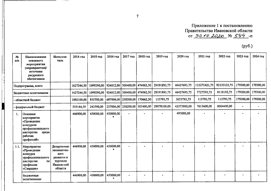 Постановление Правительства Ивановской области от 30.10.2020 N 544-п "О внесении изменений в постановление Правительства Ивановской области от 13.11.2013 N 459-п "Об утверждении государственной программы Ивановской области "Экономическое развитие и инновационная экономика Ивановской области"
