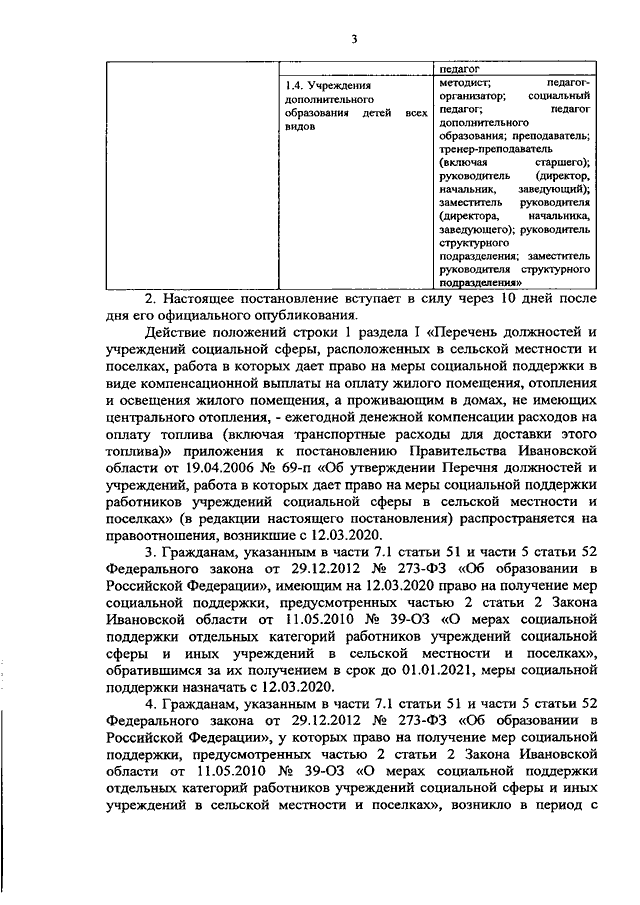 Постановление Правительства Ивановской области от 12.11.2020 N 571-п "О внесении изменений в постановление Правительства Ивановской области от 19.04.2006 N 69-п "Об утверждении Перечня должностей и учреждений, работа в которых дает право на меры социальной поддержки работников учреждений социальной сферы в сельской местности и поселках"