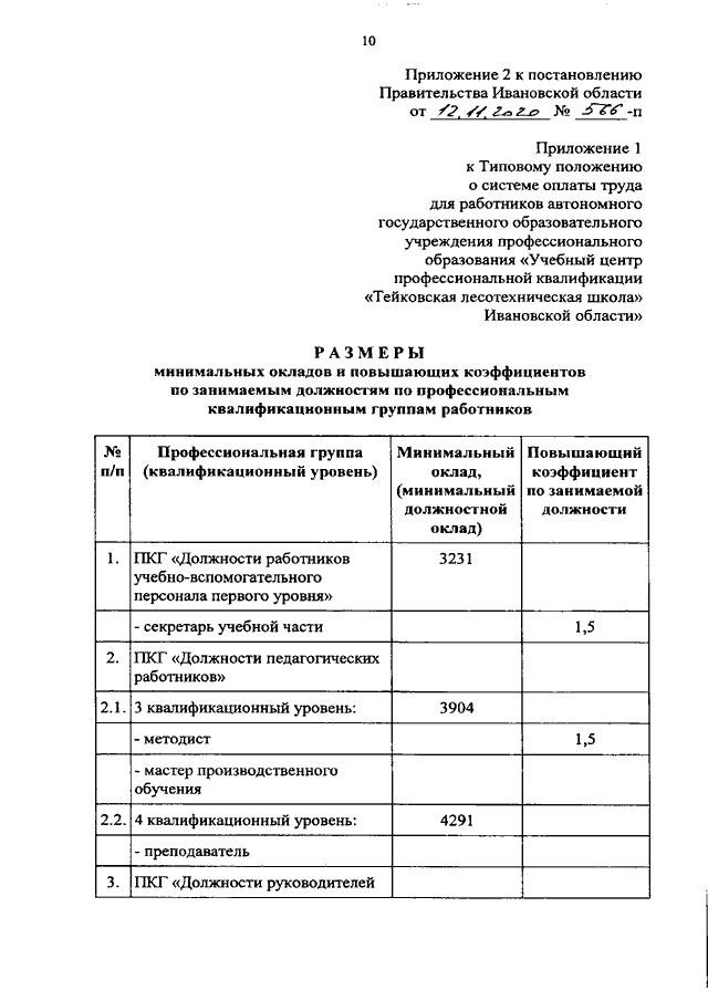 Постановление Правительства Ивановской области от 12.11.2020 N 566-п "О внесении изменений в постановление Правительства Ивановской области от 31.12.2008 N 365-п "О системе оплаты труда работников автономных государственных учреждений Ивановской области и областных государственных казенных учреждений, подведомственных комитету Ивановской области по лесному хозяйству"