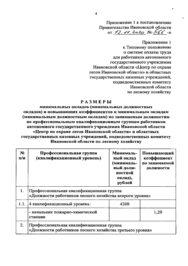 Постановление Правительства Ивановской области от 12.11.2020 N 566-п "О внесении изменений в постановление Правительства Ивановской области от 31.12.2008 N 365-п "О системе оплаты труда работников автономных государственных учреждений Ивановской области и областных государственных казенных учреждений, подведомственных комитету Ивановской области по лесному хозяйству"