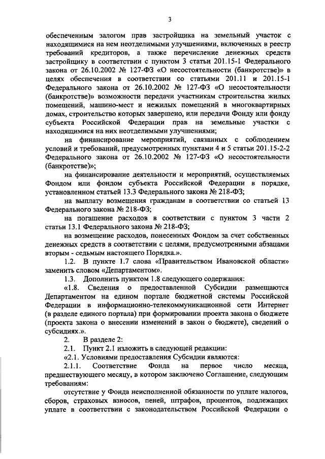 Постановление Правительства Ивановской области от 23.11.2020 N 579-п "О внесении изменений в постановление Правительства Ивановской области от 15.10.2019 N 409-п "Об утверждении Порядка определения объема и предоставления из бюджета Ивановской области субсидии в виде имущественного взноса в имущество публично-правовой компании "Фонд защиты прав граждан - участников долевого строительства" в целях финансирования мероприятий по завершению строительства объектов незавершенного строительства - многоквартирных домов"