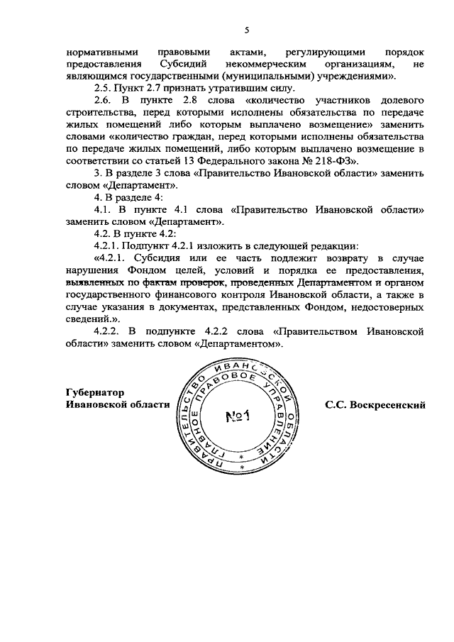 Постановление Правительства Ивановской области от 23.11.2020 N 579-п "О внесении изменений в постановление Правительства Ивановской области от 15.10.2019 N 409-п "Об утверждении Порядка определения объема и предоставления из бюджета Ивановской области субсидии в виде имущественного взноса в имущество публично-правовой компании "Фонд защиты прав граждан - участников долевого строительства" в целях финансирования мероприятий по завершению строительства объектов незавершенного строительства - многоквартирных домов"