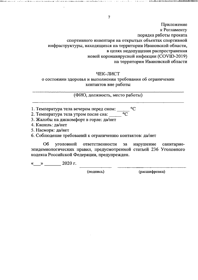 Постановление Правительства Ивановской области от 04.12.2020 N 590-п "О внесении изменений в постановление Правительства Ивановской области от 08.05.2020 N 209-п "Об утверждении регламентов по проведению профилактических мероприятий и дезинфекции в целях недопущения распространения новой коронавирусной инфекции (COVID-2019) на территории Ивановской области" (вместе с "Регламентом порядка работы проката спортивного инвентаря на открытых объектах спортивной инфраструктуры, находящихся на территории Ивановской области, в целях недопущения распространения новой коронавирусной инфекции (COVID-2019) на территории Ивановской области")