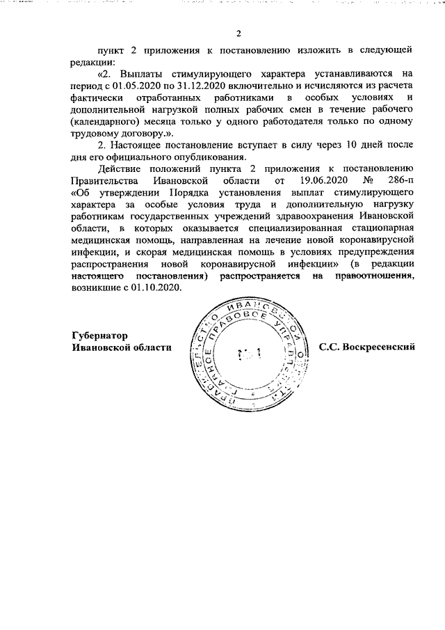 Постановление Правительства Ивановской области от 03.12.2020 N 589-п "О внесении изменения в постановление Правительства Ивановской области от 19.06.2020 N 286-п "Об утверждении Порядка установления выплат стимулирующего характера за особые условия труда и дополнительную нагрузку работникам государственных учреждений здравоохранения Ивановской области, в которых оказывается специализированная стационарная медицинская помощь, направленная на лечение новой коронавирусной инфекции, и скорая медицинская помощь в условиях предупреждения распространения новой коронавирусной инфекции"