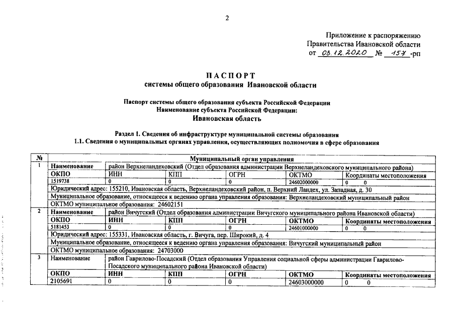 Распоряжение Правительства Ивановской области от 03.12.2020 N 157-рп "Об утверждении паспорта системы общего образования Ивановской области"