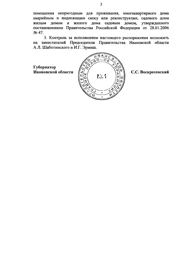 Распоряжение Правительства Ивановской области от 07.12.2020 N 158-рп "О признании многоквартирного дома аварийным и подлежащим сносу"