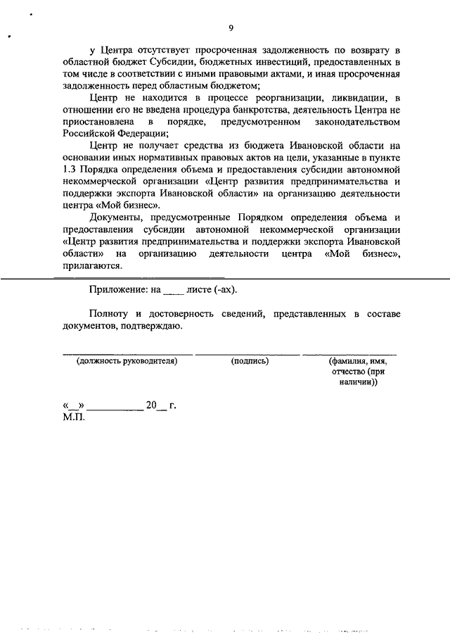 Постановление Правительства Ивановской области от 07.12.2020 N 612-п "О внесении изменений в постановление Правительства Ивановской области от 25.02.2019 N 54-п "Об утверждении Порядка определения объема и предоставления субсидии автономной некоммерческой организации "Центр развития предпринимательства и поддержки экспорта Ивановской области" на организацию деятельности центра "Мой бизнес"