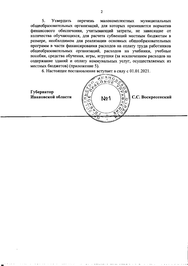 Постановление Правительства Ивановской области от 07.12.2020 N 608-п "Об утверждении нормативов обеспечения государственных гарантий реализации прав на получение общедоступного и бесплатного общего образования, обеспечения дополнительного образования в муниципальных образовательных организациях и возмещения затрат на финансовое обеспечение получения общего образования в частных образовательных организациях на 2021 год и на плановый период 2022 и 2023 годов" (вместе с "Нормативами обеспечения государственных гарантий реализации прав на получение общедоступного и бесплатного дошкольного, начального общего, основного общего, среднего общего образования в муниципальных общеобразовательных организациях, обеспечения дополнительного образования в муниципальных общеобразовательных организациях на 2021 год", "Нормативами возмещения затрат на финансовое обеспечение получения дошкольного, начального общего, основного общего, среднего общего образования в частных общеобразовательных организациях, осуществляющих образовательную деятельность по имеющим государственную аккредитацию основным общеобразовательным программам, на 2021 год", "Перечнем малокомплектных муниципальных общеобразовательных организаций, для которых применяется норматив финансового обеспечения, учитывающий затраты, не зависящие от количества обучающихся, для расчета субвенций местным бюджетам в размере, необходимом для реализации основных общеобразовательных программ в части финансирования расходов на оплату труда работников общеобразовательных организаций, расходов на учебники, учебные пособия, средства обучения, игры, игрушки (за исключением расходов на содержание зданий и оплату коммунальных услуг, осуществляемых из местных бюджетов)")