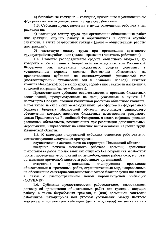 Постановление Правительства Ивановской области от 07.12.2020 N 605-п "Об утверждении Порядка предоставления субсидий на реализацию дополнительных мероприятий, направленных на снижение напряженности на рынке труда Ивановской области"