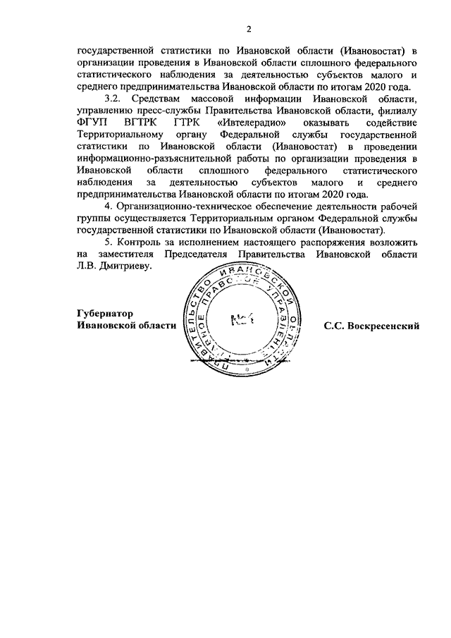 Распоряжение Правительства Ивановской области от 07.12.2020 N 167-рп "Об организации проведения в Ивановской области сплошного федерального статистического наблюдения за деятельностью субъектов малого и среднего предпринимательства Ивановской области по итогам 2020 года"