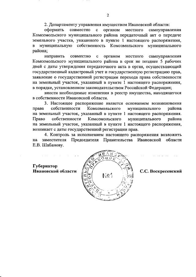 Распоряжение Правительства Ивановской области от 07.12.2020 N 174-рп "О передаче земельного участка из собственности Ивановской области в муниципальную собственность Комсомольского муниципального района"