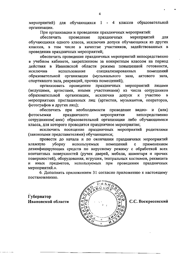 Постановление Правительства Ивановской области от 14.12.2020 N 621-п "О внесении изменений в постановление Правительства Ивановской области от 08.05.2020 N 209-п "Об утверждении регламентов по проведению профилактических мероприятий и дезинфекции в целях недопущения распространения новой коронавирусной инфекции (COVID-2019) на территории Ивановской области" (вместе с "Регламентом порядка функционирования общественных пространств и организаций в период празднования Нового года и Рождества Христова в условиях распространения новой коронавирусной инфекции (COVID-2019) на территории Ивановской области в целях недопущения распространения новой коронавирусной инфекции (COVID-2019) на территории Ивановской области")