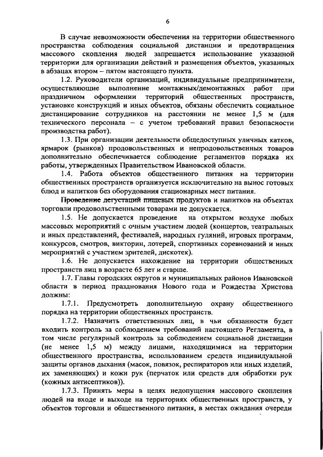 Постановление Правительства Ивановской области от 14.12.2020 N 621-п "О внесении изменений в постановление Правительства Ивановской области от 08.05.2020 N 209-п "Об утверждении регламентов по проведению профилактических мероприятий и дезинфекции в целях недопущения распространения новой коронавирусной инфекции (COVID-2019) на территории Ивановской области" (вместе с "Регламентом порядка функционирования общественных пространств и организаций в период празднования Нового года и Рождества Христова в условиях распространения новой коронавирусной инфекции (COVID-2019) на территории Ивановской области в целях недопущения распространения новой коронавирусной инфекции (COVID-2019) на территории Ивановской области")