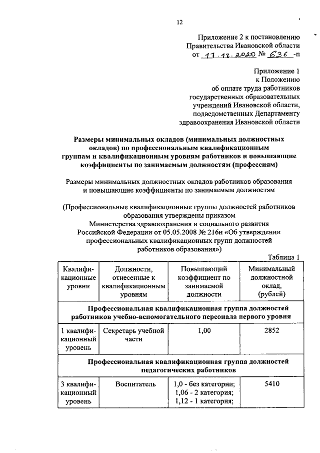 Постановление Правительства Ивановской области от 17.12.2020 N 636-п "О внесении изменений в постановление Правительства Ивановской области от 30.12.2015 N 642-п "О системе оплаты труда работников государственных учреждений Ивановской области, подведомственных Департаменту здравоохранения Ивановской области"