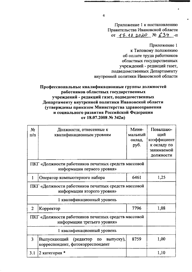 Постановление Правительства Ивановской области от 17.12.2020 N 634-п "О внесении изменений в постановление Правительства Ивановской области от 31.12.2008 N 375-п "О системе оплаты труда работников государственных учреждений Ивановской области, подведомственных Департаменту внутренней политики Ивановской области"