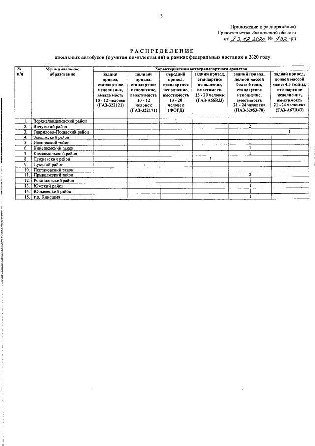 Распоряжение Правительства Ивановской области от 23.12.2020 N 182-рп "О принятии школьных автобусов в собственность Ивановской области и передаче школьных автобусов в собственность муниципальных образований Ивановской области"