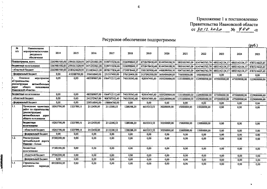 Постановление Правительства Ивановской области от 30.12.2020 N 700-п "О внесении изменений в постановление Правительства Ивановской области от 13.11.2013 N 447-п "Об утверждении государственной программы Ивановской области "Развитие транспортной системы Ивановской области"