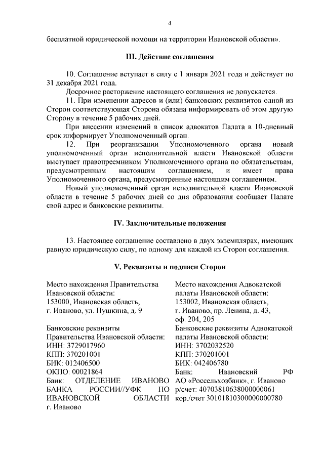 Соглашение Правительства Ивановской области от 30.11.2020 N 40-с "Об оказании бесплатной юридической помощи адвокатами, являющимися участниками государственной системы бесплатной юридической помощи" (вместе со "Списком адвокатов Ивановской области, участвующих в деятельности государственной системы бесплатной юридической помощи")