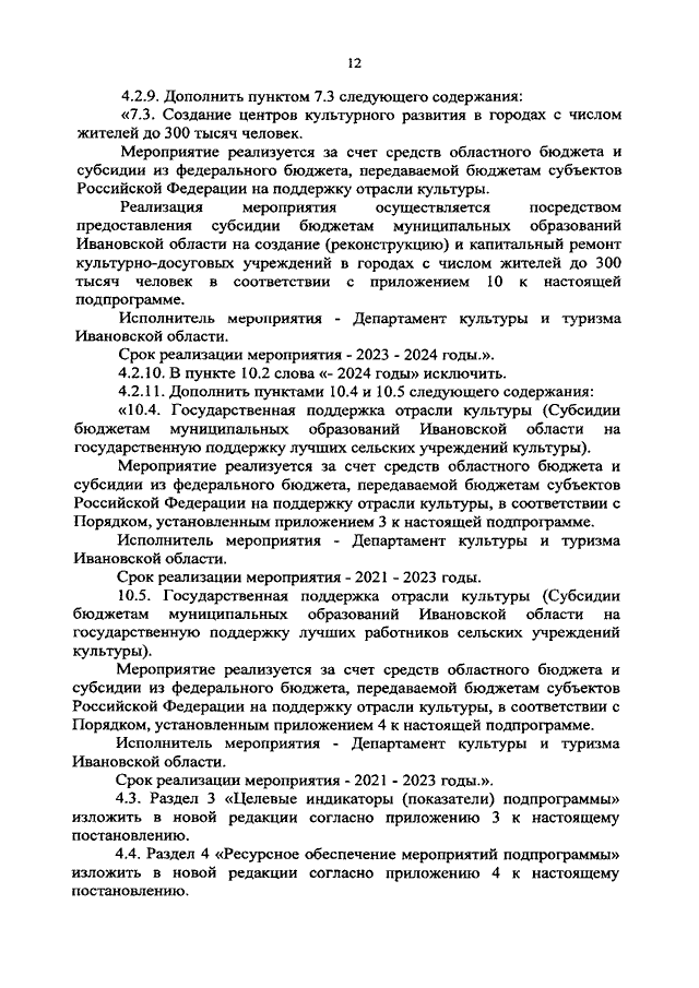 Постановление Правительства Ивановской области от 27.01.2021 N 6-п "О внесении изменений в постановление Правительства Ивановской области от 06.12.2017 N 455-п "Об утверждении государственной программы Ивановской области "Развитие культуры и туризма в Ивановской области" (вместе с "Порядком предоставления и распределения субсидий бюджетам муниципальных образований Ивановской области на создание центров культурного развития в городах с числом жителей до 300 тысяч человек")
