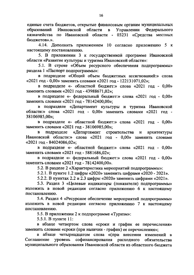 Постановление Правительства Ивановской области от 27.01.2021 N 6-п "О внесении изменений в постановление Правительства Ивановской области от 06.12.2017 N 455-п "Об утверждении государственной программы Ивановской области "Развитие культуры и туризма в Ивановской области" (вместе с "Порядком предоставления и распределения субсидий бюджетам муниципальных образований Ивановской области на создание центров культурного развития в городах с числом жителей до 300 тысяч человек")
