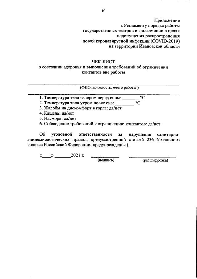 Постановление Правительства Ивановской области от 29.01.2021 N 24-п "О внесении изменений в постановление Правительства Ивановской области от 08.05.2020 N 209-п "Об утверждении регламентов по проведению профилактических мероприятий и дезинфекции в целях недопущения распространения новой коронавирусной инфекции (COVID-2019) на территории Ивановской области" (вместе с "Регламентом порядка работы государственных театров и филармонии в целях недопущения распространения новой коронавирусной инфекции (COVID-2019) на территории Ивановской области")