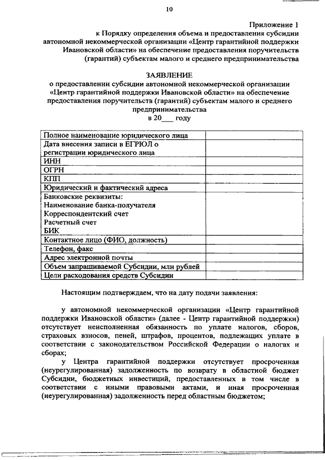 Постановление Правительства Ивановской области от 28.01.2021 N 20-п "Об утверждении Порядка определения объема и предоставления субсидии автономной некоммерческой организации "Центр гарантийной поддержки Ивановской области" на обеспечение предоставления поручительств (гарантий) субъектам малого и среднего предпринимательства"
