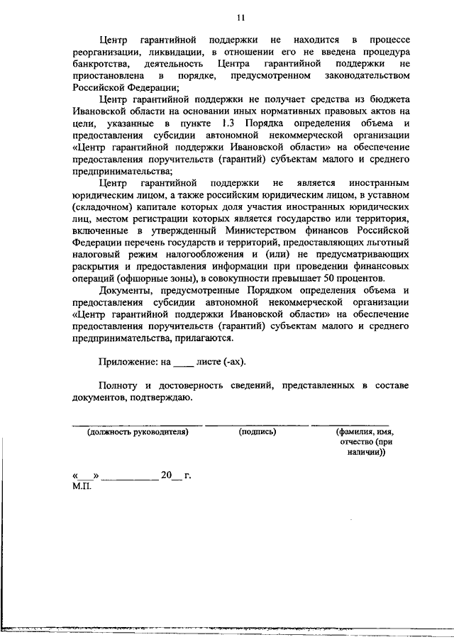 Постановление Правительства Ивановской области от 28.01.2021 N 20-п "Об утверждении Порядка определения объема и предоставления субсидии автономной некоммерческой организации "Центр гарантийной поддержки Ивановской области" на обеспечение предоставления поручительств (гарантий) субъектам малого и среднего предпринимательства"