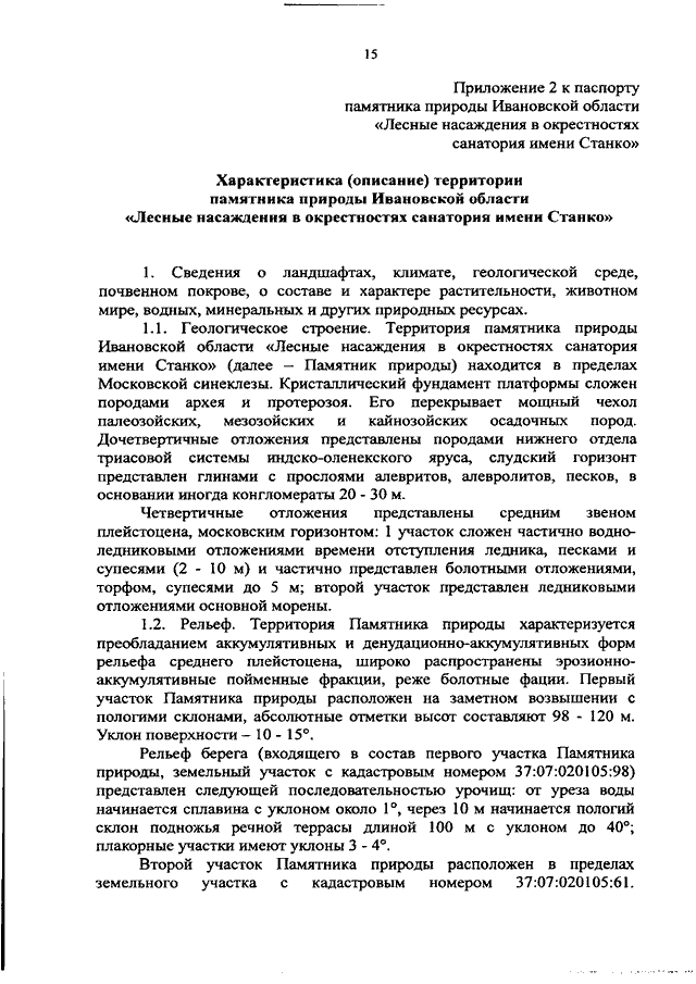 Постановление Правительства Ивановской области от 29.01.2021 N 32-п "О памятнике природы Ивановской области "Лесные насаждения в окрестностях санатория имени Станко" (вместе с "Паспортом памятника природы Ивановской области "Лесные насаждения в окрестностях санатория имени Станко")