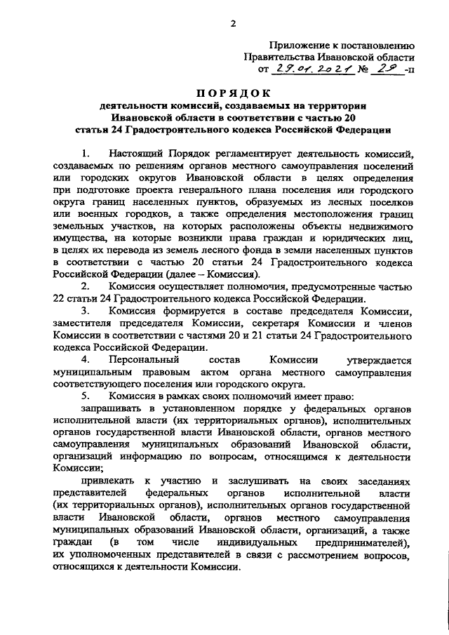 Постановление Правительства Ивановской области от 29.01.2021 N 29-п "Об утверждении Порядка деятельности комиссий, создаваемых на территории Ивановской области в соответствии с частью 20 статьи 24 Градостроительного кодекса Российской Федерации"