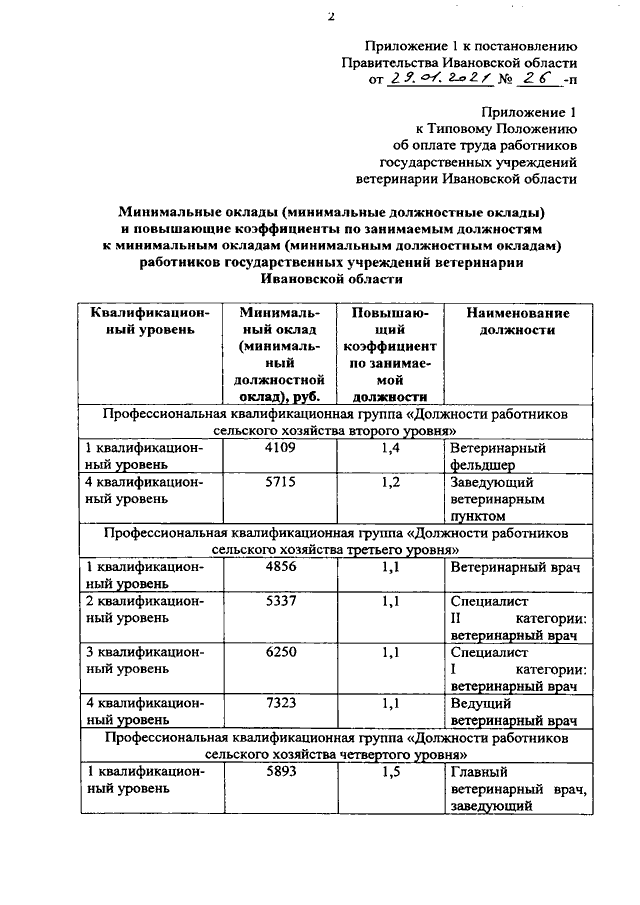 Постановление Правительства Ивановской области от 29.01.2021 N 26-п "О внесении изменений в постановление Правительства Ивановской области от 31.12.2008 N 374-п "О системе оплаты труда работников государственных учреждений ветеринарии Ивановской области"