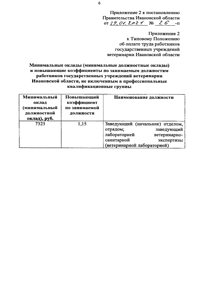 Постановление Правительства Ивановской области от 29.01.2021 N 26-п "О внесении изменений в постановление Правительства Ивановской области от 31.12.2008 N 374-п "О системе оплаты труда работников государственных учреждений ветеринарии Ивановской области"