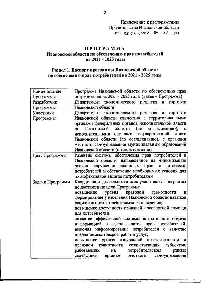 Распоряжение Правительства Ивановской области от 29.01.2021 N 11-рп "Об утверждении программы Ивановской области по обеспечению прав потребителей на 2021 - 2025 годы и о признании утратившим силу распоряжения Правительства Ивановской области от 21.09.2016 N 194-рп "Об утверждении плана мероприятий по защите прав потребителей в Ивановской области на 2016 - 2019 годы"