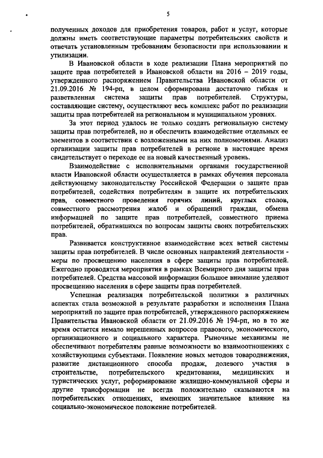 Распоряжение Правительства Ивановской области от 29.01.2021 N 11-рп "Об утверждении программы Ивановской области по обеспечению прав потребителей на 2021 - 2025 годы и о признании утратившим силу распоряжения Правительства Ивановской области от 21.09.2016 N 194-рп "Об утверждении плана мероприятий по защите прав потребителей в Ивановской области на 2016 - 2019 годы"