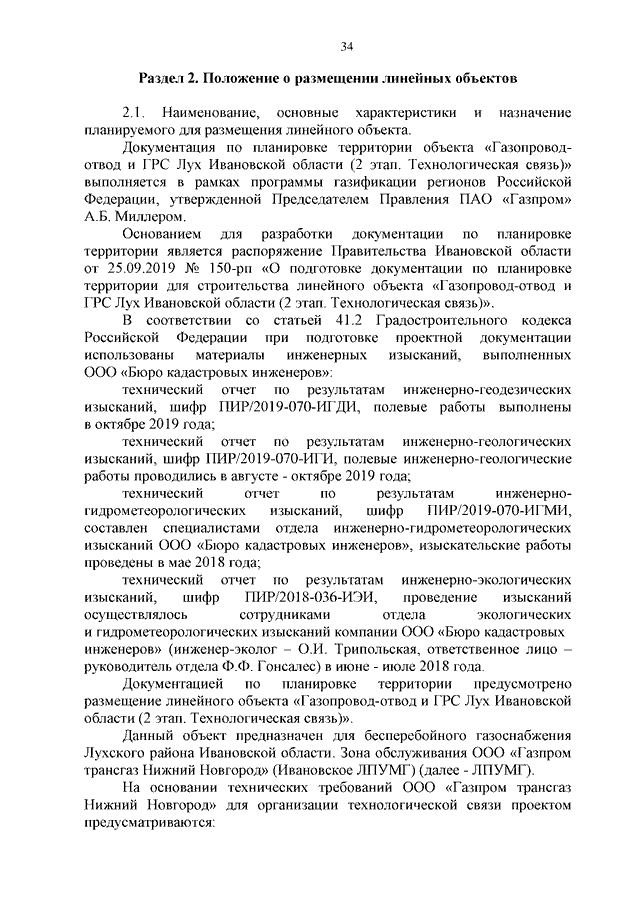 Распоряжение Правительства Ивановской области от 29.01.2021 N 12-рп "О внесении изменения в распоряжение Правительства Ивановской области от 05.06.2020 N 72-рп "Об утверждении проекта планировки и проекта межевания территории, предназначенной для строительства объекта "Газопровод-отвод и ГРС Лух Ивановской области (2 этап. Технологическая связь)"