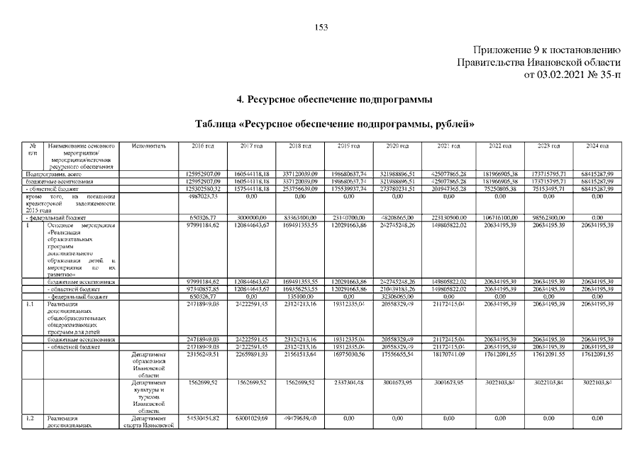 Постановление Правительства Ивановской области от 03.02.2021 N 35-п "О внесении изменений в постановление Правительства Ивановской области от 13.11.2013 N 450-п "Об утверждении государственной программы "Развитие образования Ивановской области" (вместе с "Порядком предоставления и распределения субсидий бюджетам муниципальных районов и городских округов Ивановской области на создание и обеспечение функционирования центров образования естественно-научной и технологической направленностей в общеобразовательных организациях, расположенных в сельской местности и малых городах", "Порядком предоставления и распределения субсидий бюджетам муниципальных районов и городских округов Ивановской области на создание детских технопарков "Кванториум", "Порядком предоставления субсидий из областного бюджета на создание дополнительных мест для детей в возрасте от 1,5 до 3 лет любой направленности в организациях, осуществляющих образовательную деятельность (за исключением государственных, муниципальных), и у индивидуальных предпринимателей, осуществляющих образовательную деятельность по образовательным программам дошкольного образования, в том числе адаптированным, и присмотр и уход за детьми", "Порядком предоставления и распределения субсидий бюджетам муниципальных районов и городских округов Ивановской области на создание новых мест в образовательных организациях различных типов для реализации дополнительных общеразвивающих программ всех направленностей", "Порядком предоставления и распределения субсидий бюджетам муниципальных районов и городских округов Ивановской области на обеспечение образовательных организаций материально-технической базой для внедрения цифровой образовательной среды")