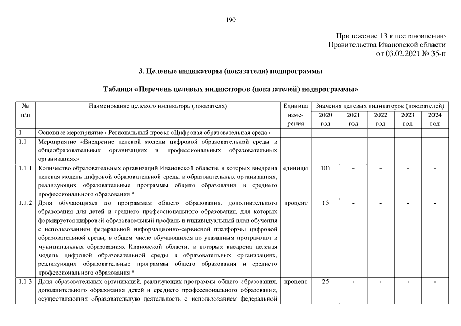 Постановление Правительства Ивановской области от 03.02.2021 N 35-п "О внесении изменений в постановление Правительства Ивановской области от 13.11.2013 N 450-п "Об утверждении государственной программы "Развитие образования Ивановской области" (вместе с "Порядком предоставления и распределения субсидий бюджетам муниципальных районов и городских округов Ивановской области на создание и обеспечение функционирования центров образования естественно-научной и технологической направленностей в общеобразовательных организациях, расположенных в сельской местности и малых городах", "Порядком предоставления и распределения субсидий бюджетам муниципальных районов и городских округов Ивановской области на создание детских технопарков "Кванториум", "Порядком предоставления субсидий из областного бюджета на создание дополнительных мест для детей в возрасте от 1,5 до 3 лет любой направленности в организациях, осуществляющих образовательную деятельность (за исключением государственных, муниципальных), и у индивидуальных предпринимателей, осуществляющих образовательную деятельность по образовательным программам дошкольного образования, в том числе адаптированным, и присмотр и уход за детьми", "Порядком предоставления и распределения субсидий бюджетам муниципальных районов и городских округов Ивановской области на создание новых мест в образовательных организациях различных типов для реализации дополнительных общеразвивающих программ всех направленностей", "Порядком предоставления и распределения субсидий бюджетам муниципальных районов и городских округов Ивановской области на обеспечение образовательных организаций материально-технической базой для внедрения цифровой образовательной среды")