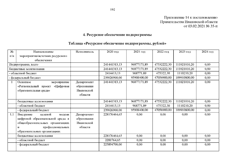 Постановление Правительства Ивановской области от 03.02.2021 N 35-п "О внесении изменений в постановление Правительства Ивановской области от 13.11.2013 N 450-п "Об утверждении государственной программы "Развитие образования Ивановской области" (вместе с "Порядком предоставления и распределения субсидий бюджетам муниципальных районов и городских округов Ивановской области на создание и обеспечение функционирования центров образования естественно-научной и технологической направленностей в общеобразовательных организациях, расположенных в сельской местности и малых городах", "Порядком предоставления и распределения субсидий бюджетам муниципальных районов и городских округов Ивановской области на создание детских технопарков "Кванториум", "Порядком предоставления субсидий из областного бюджета на создание дополнительных мест для детей в возрасте от 1,5 до 3 лет любой направленности в организациях, осуществляющих образовательную деятельность (за исключением государственных, муниципальных), и у индивидуальных предпринимателей, осуществляющих образовательную деятельность по образовательным программам дошкольного образования, в том числе адаптированным, и присмотр и уход за детьми", "Порядком предоставления и распределения субсидий бюджетам муниципальных районов и городских округов Ивановской области на создание новых мест в образовательных организациях различных типов для реализации дополнительных общеразвивающих программ всех направленностей", "Порядком предоставления и распределения субсидий бюджетам муниципальных районов и городских округов Ивановской области на обеспечение образовательных организаций материально-технической базой для внедрения цифровой образовательной среды")