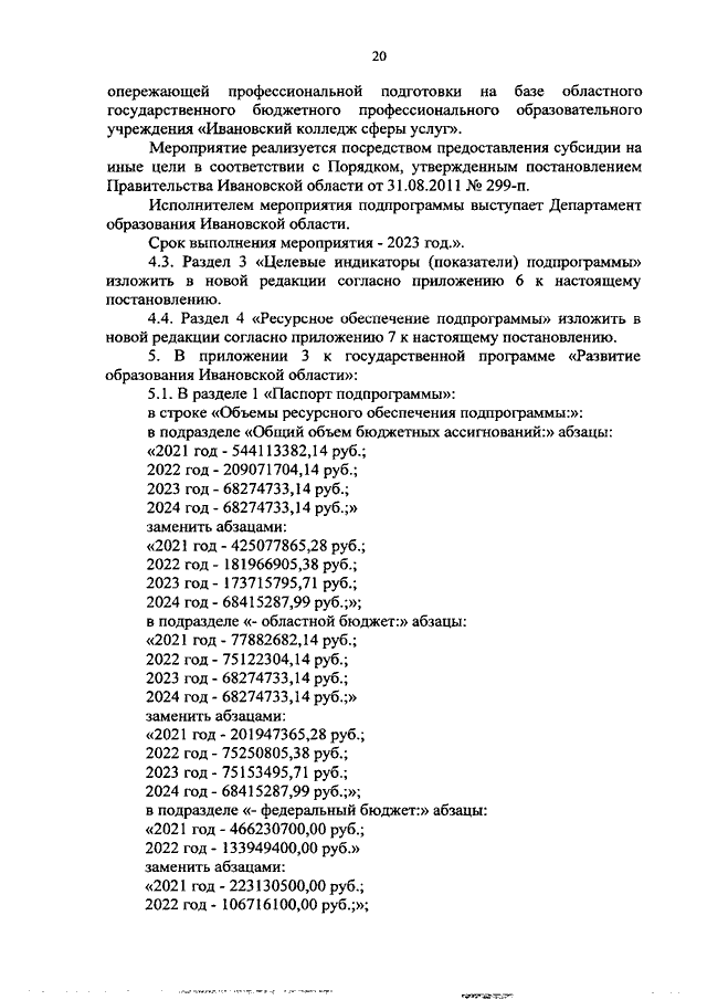 Постановление Правительства Ивановской области от 03.02.2021 N 35-п "О внесении изменений в постановление Правительства Ивановской области от 13.11.2013 N 450-п "Об утверждении государственной программы "Развитие образования Ивановской области" (вместе с "Порядком предоставления и распределения субсидий бюджетам муниципальных районов и городских округов Ивановской области на создание и обеспечение функционирования центров образования естественно-научной и технологической направленностей в общеобразовательных организациях, расположенных в сельской местности и малых городах", "Порядком предоставления и распределения субсидий бюджетам муниципальных районов и городских округов Ивановской области на создание детских технопарков "Кванториум", "Порядком предоставления субсидий из областного бюджета на создание дополнительных мест для детей в возрасте от 1,5 до 3 лет любой направленности в организациях, осуществляющих образовательную деятельность (за исключением государственных, муниципальных), и у индивидуальных предпринимателей, осуществляющих образовательную деятельность по образовательным программам дошкольного образования, в том числе адаптированным, и присмотр и уход за детьми", "Порядком предоставления и распределения субсидий бюджетам муниципальных районов и городских округов Ивановской области на создание новых мест в образовательных организациях различных типов для реализации дополнительных общеразвивающих программ всех направленностей", "Порядком предоставления и распределения субсидий бюджетам муниципальных районов и городских округов Ивановской области на обеспечение образовательных организаций материально-технической базой для внедрения цифровой образовательной среды")