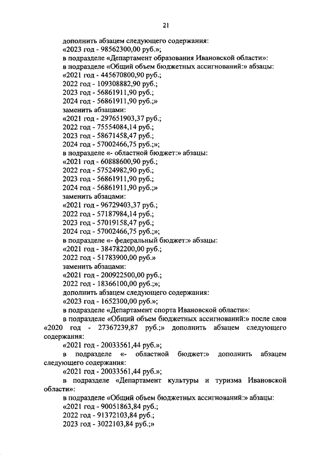 Постановление Правительства Ивановской области от 03.02.2021 N 35-п "О внесении изменений в постановление Правительства Ивановской области от 13.11.2013 N 450-п "Об утверждении государственной программы "Развитие образования Ивановской области" (вместе с "Порядком предоставления и распределения субсидий бюджетам муниципальных районов и городских округов Ивановской области на создание и обеспечение функционирования центров образования естественно-научной и технологической направленностей в общеобразовательных организациях, расположенных в сельской местности и малых городах", "Порядком предоставления и распределения субсидий бюджетам муниципальных районов и городских округов Ивановской области на создание детских технопарков "Кванториум", "Порядком предоставления субсидий из областного бюджета на создание дополнительных мест для детей в возрасте от 1,5 до 3 лет любой направленности в организациях, осуществляющих образовательную деятельность (за исключением государственных, муниципальных), и у индивидуальных предпринимателей, осуществляющих образовательную деятельность по образовательным программам дошкольного образования, в том числе адаптированным, и присмотр и уход за детьми", "Порядком предоставления и распределения субсидий бюджетам муниципальных районов и городских округов Ивановской области на создание новых мест в образовательных организациях различных типов для реализации дополнительных общеразвивающих программ всех направленностей", "Порядком предоставления и распределения субсидий бюджетам муниципальных районов и городских округов Ивановской области на обеспечение образовательных организаций материально-технической базой для внедрения цифровой образовательной среды")