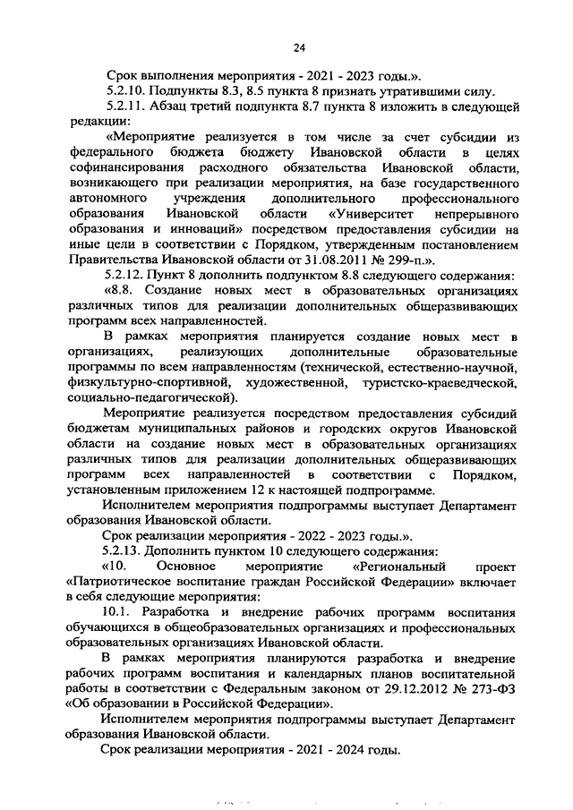 Постановление Правительства Ивановской области от 03.02.2021 N 35-п "О внесении изменений в постановление Правительства Ивановской области от 13.11.2013 N 450-п "Об утверждении государственной программы "Развитие образования Ивановской области" (вместе с "Порядком предоставления и распределения субсидий бюджетам муниципальных районов и городских округов Ивановской области на создание и обеспечение функционирования центров образования естественно-научной и технологической направленностей в общеобразовательных организациях, расположенных в сельской местности и малых городах", "Порядком предоставления и распределения субсидий бюджетам муниципальных районов и городских округов Ивановской области на создание детских технопарков "Кванториум", "Порядком предоставления субсидий из областного бюджета на создание дополнительных мест для детей в возрасте от 1,5 до 3 лет любой направленности в организациях, осуществляющих образовательную деятельность (за исключением государственных, муниципальных), и у индивидуальных предпринимателей, осуществляющих образовательную деятельность по образовательным программам дошкольного образования, в том числе адаптированным, и присмотр и уход за детьми", "Порядком предоставления и распределения субсидий бюджетам муниципальных районов и городских округов Ивановской области на создание новых мест в образовательных организациях различных типов для реализации дополнительных общеразвивающих программ всех направленностей", "Порядком предоставления и распределения субсидий бюджетам муниципальных районов и городских округов Ивановской области на обеспечение образовательных организаций материально-технической базой для внедрения цифровой образовательной среды")