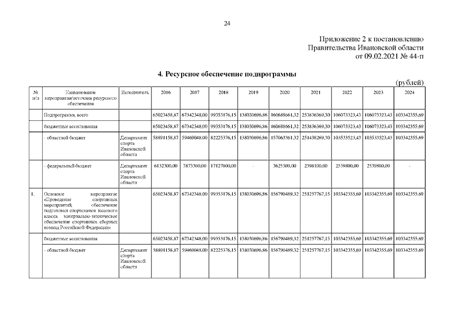 Постановление Правительства Ивановской области от 09.02.2021 N 44-п "О внесении изменений в постановление Правительства Ивановской области от 18.02.2016 N 43-п "Об утверждении государственной программы Ивановской области "Развитие физической культуры и спорта в Ивановской области"
